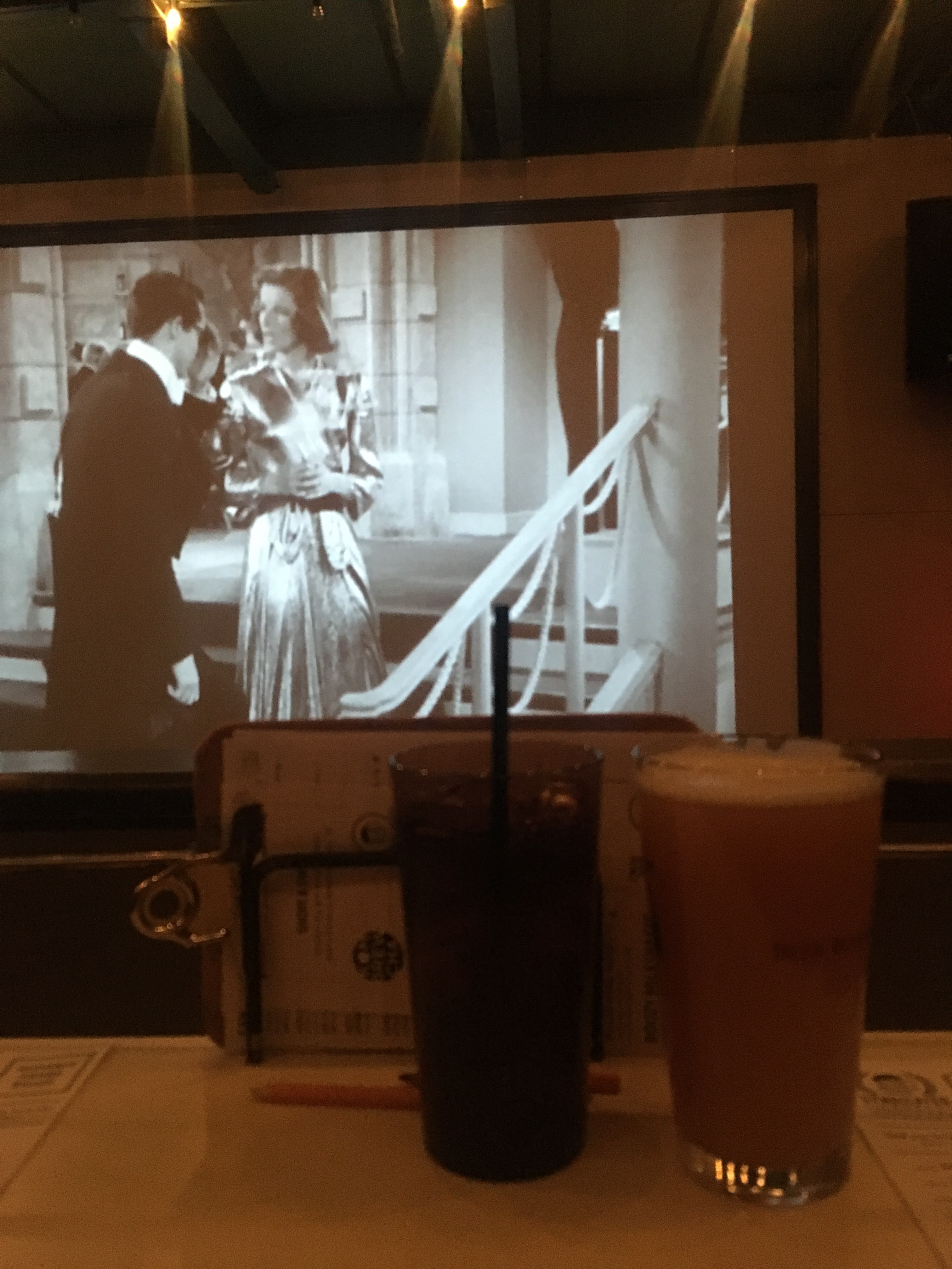 Syndicated ha però anche un vero e proprio teatro/sala cinema con i posti a sedere di due in due e con dei tavoli piccoli; lì ci sono menu e matite per ordinare cibo e bevande prima o durante la proiezione.